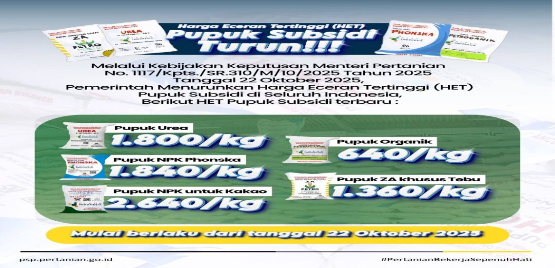 Kabar baik untuk petani Indonesia! Harga pupuk subsidi resmi turun, kini makin terjangkau dan tersedia di lapangan.Langkah ini jadi bukti nyata komitmen pemerintah dalam menjaga ketahanan pangan dan mendukung produktivitas petani. Pupuk lebih murah, hasil lebih melimpah!Pastikan...