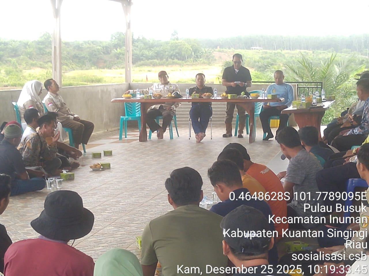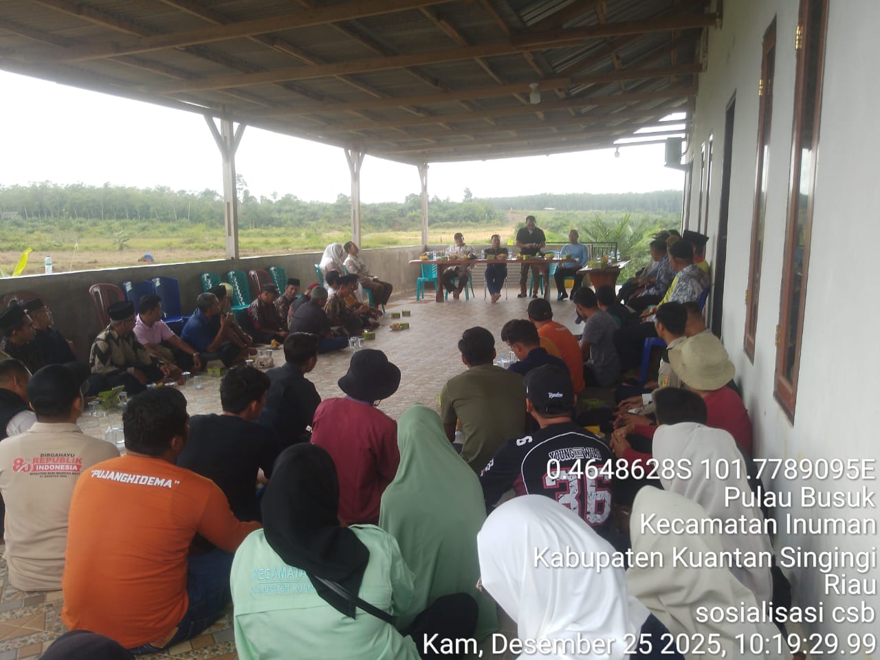 Pertemuan dalam acara Sosialisasi CSB Di Kecamatan Inuman yang diadakan pada Kamis, 25 Desember 2025 ini dihadiri oleh Bupati Kuantan Singingi, Bapak H. Suhardiman Amby, disertai dengan Kepala Dinas Tanaman Pangan, Hortikultura dan Ketahanan Pangan, Bapak Deflides Gusni, Sekretaris Dinas Bapak H. Novrion, Para Kepala Bidang Dinas Tanaman Pangan Hortikultura dan Ketahanan Pangan beserta rombongan dan dihadiri pula oleh Tokoh Masyarakat, para petani dan undangan lainnya.